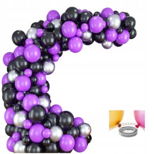 ZESTAW DEKORACJI GIRLANDA FIOLETOWE CZARNE SREBRNE BALONY URODZINY IMPREZA
