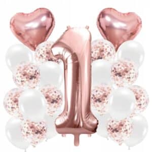 Zestaw balonów na roczek 1 urodziny dekoracje urodzinowe różowe ROSE GOLD