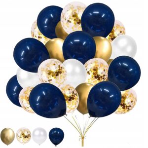 Zestaw Balonów GRANATOWE ZŁOTE BIAŁE z konfetti dekoracje na urodziny 24SZT
