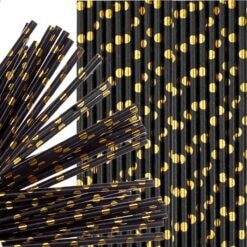 Słomki Czarne w Złote Kropki 18 urodziny dekoracje Sylwester 10 sztuk