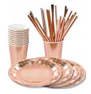 Zestaw Talerzyki Kubeczki SŁOMKI ROSE GOLD roczek urodziny panieński