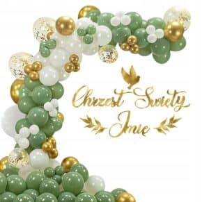 Girlanda Oliwkowa Balony Zestaw na CHRZEST ŚWIĘTY baner + imię ZŁOTE TOPPER