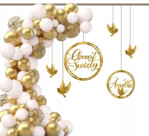 Girlanda balonowa zestaw balonów dekoracje na CHRZEST ŚWIĘTY IMIĘ ZŁOTY 3D