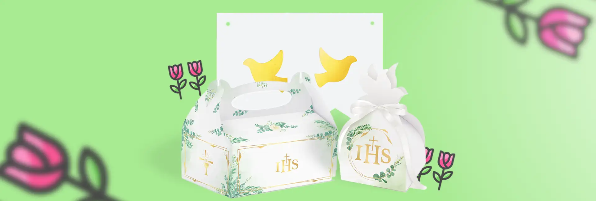 Pierwsza Komunia Święta to wyjątkowe wydarzenie, które zasługuje na piękną oprawę. W kolekcji topperów komunijnych Party Vibe znajdziesz eleganckie dekoracje w klasycznych odcieniach bieli, złota i srebra. Proponujemy subtelne napisy Pierwsza Komunia Święta oraz symbole IHS.