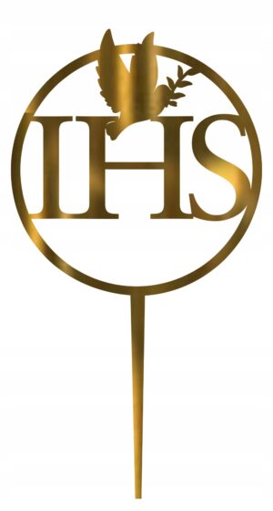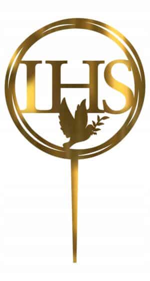 IHS pleksi Topper dekoracja na tort Komunia dekoracje komunijne złote