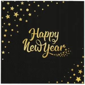 Serwetki czarno złote dekoracje na NOWY ROK Happy New year 33 cm x 33 cm