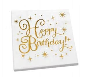 Serwetki biało złote HAPPY BIRTHDAY dekoracje na urodziny 33 cm x 33 cm