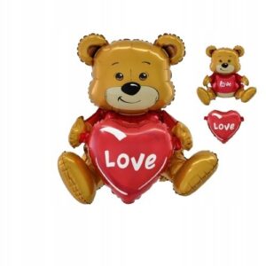 DUŻY Balon foliowy MIŚ z sercem love dekoracje na urodziny 66x66cm SERCE