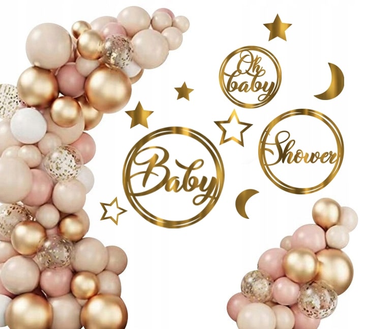 Utwórz niezapomnianą atmosferę BABY SHOWER dzięki kompletnemu zestawowi dekoracyjnemu.