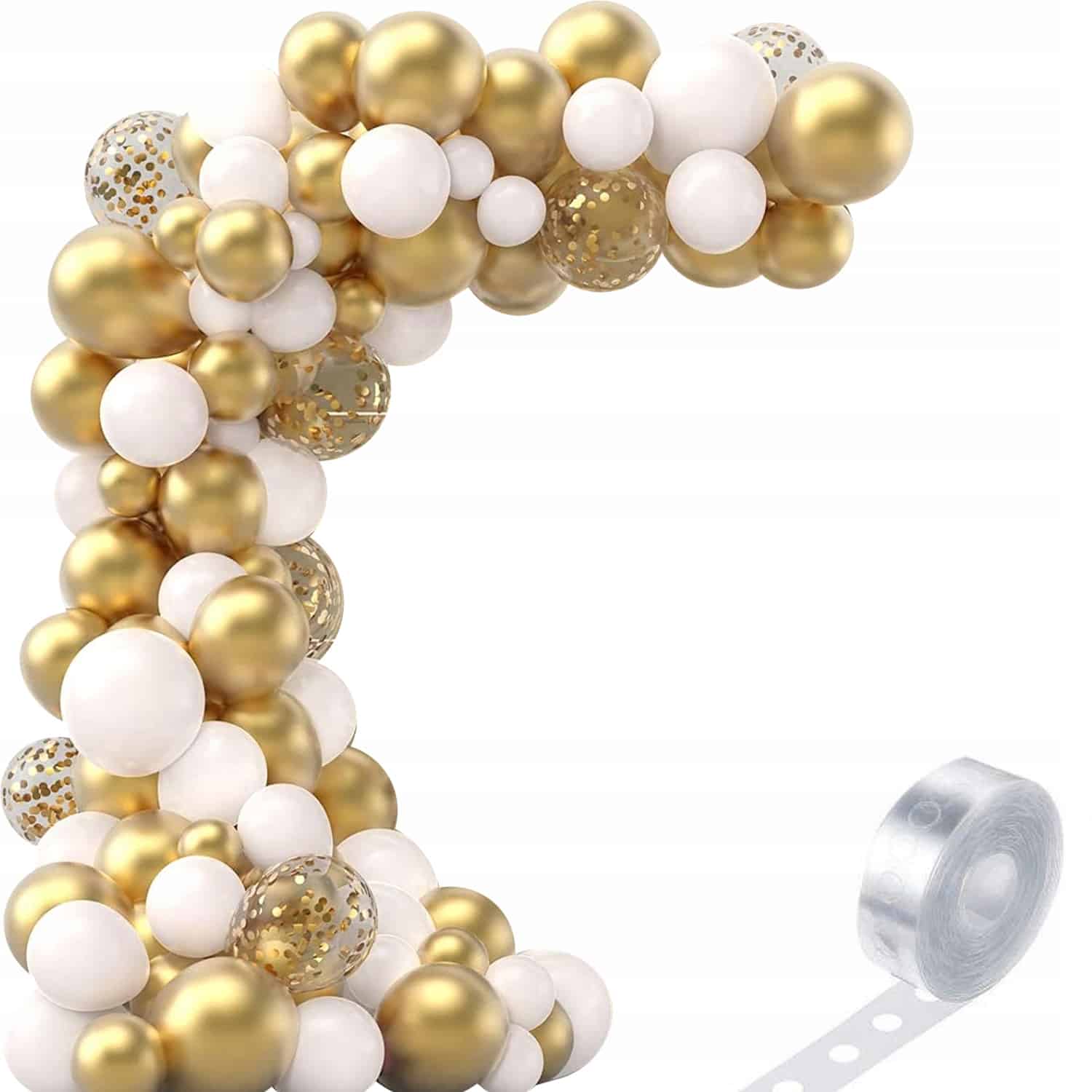 ✅25 x Balony lateksowe, 12 cm, mix białych i złotych – Dodadzą subtelności i uroku.
