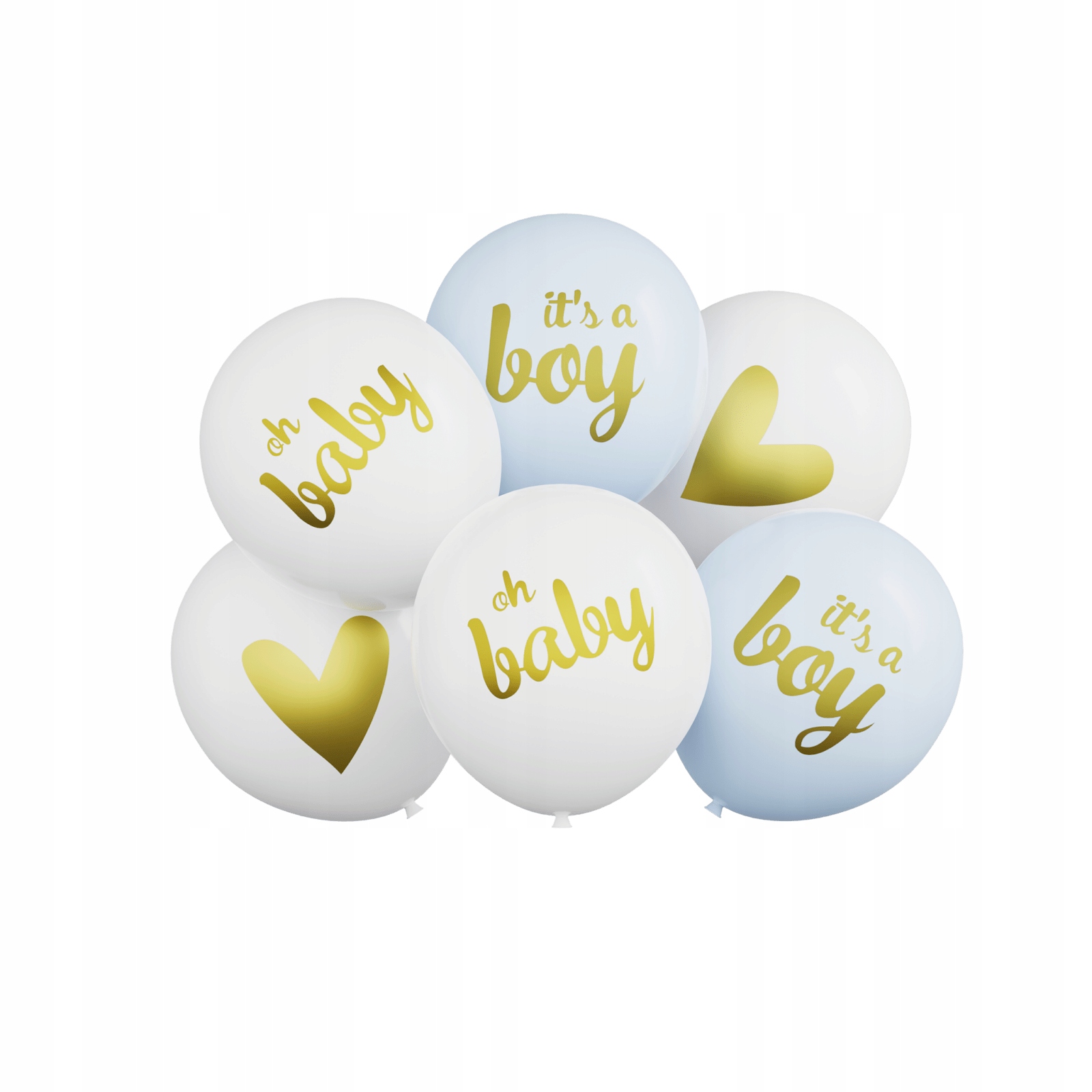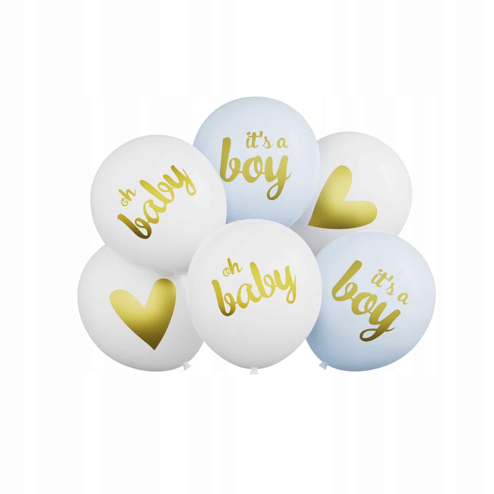 Balony dekoracje na BABY SHOWER OH BABY BOY zestaw niebieskie białe 6szt