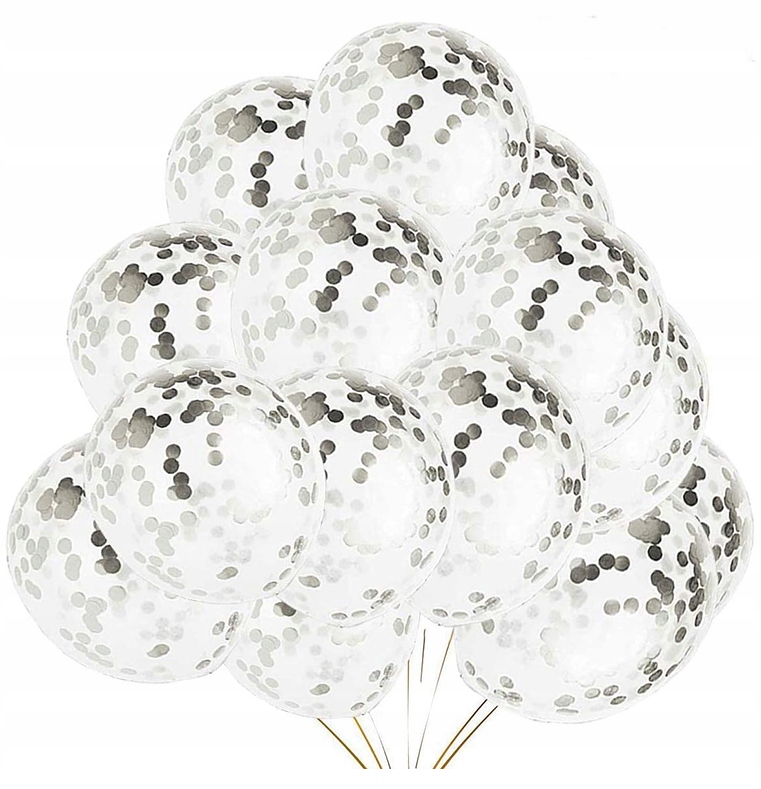 BALONY DUŻE z KONFETTI SREBRNYM 10szt dekoracje na urodziny chrzest ślub