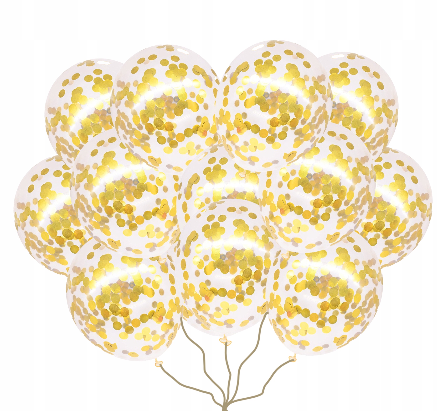 BALONY DUŻE z KONFETTI Złoty 10szt. 30cm dekoracje na urodziny chrzest ślub