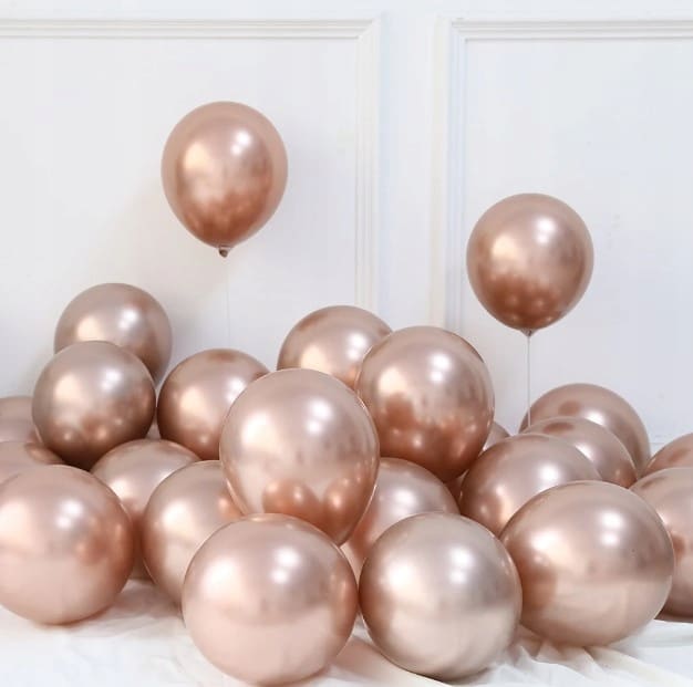 Nadaj każdej okazji wyjątkowego blasku z naszym zestawem 50 balonów w kolorze rose gold chrom o średnicy 25 cm! Doskonałe na wesela, urodziny, baby shower i inne uroczystości. Wykonane z trwałego lateksu, balony te wyróżniają się eleganckim, metalicznym połyskiem.