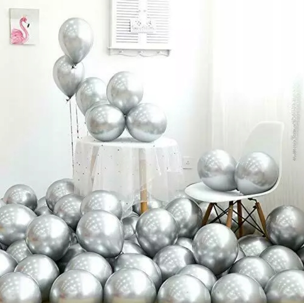 BALONY SREBRNE CHROMOWANE CHROM METALICZNE dekoracje na urodziny 100szt