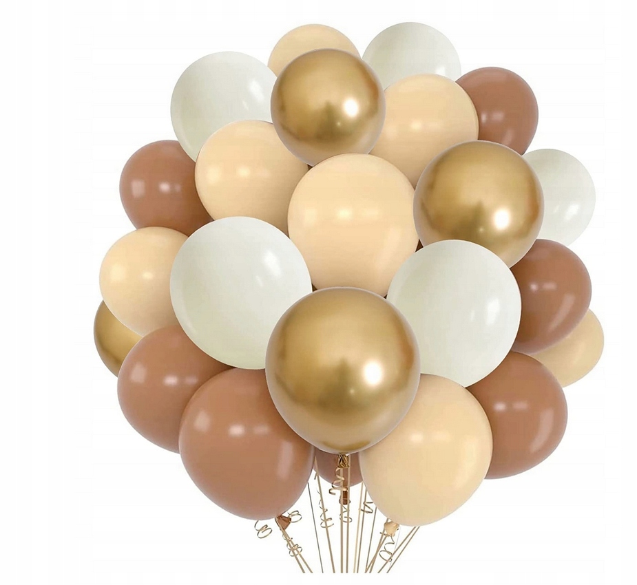 Ten zestaw balonów w odcieniach bieli, złota, brązu i beżu to doskonały wybór na urodziny i inne uroczystości. Dzięki subtelnym, ale eleganckim barwom. Balony te świetnie wpasują się w różnorodne dekoracje.