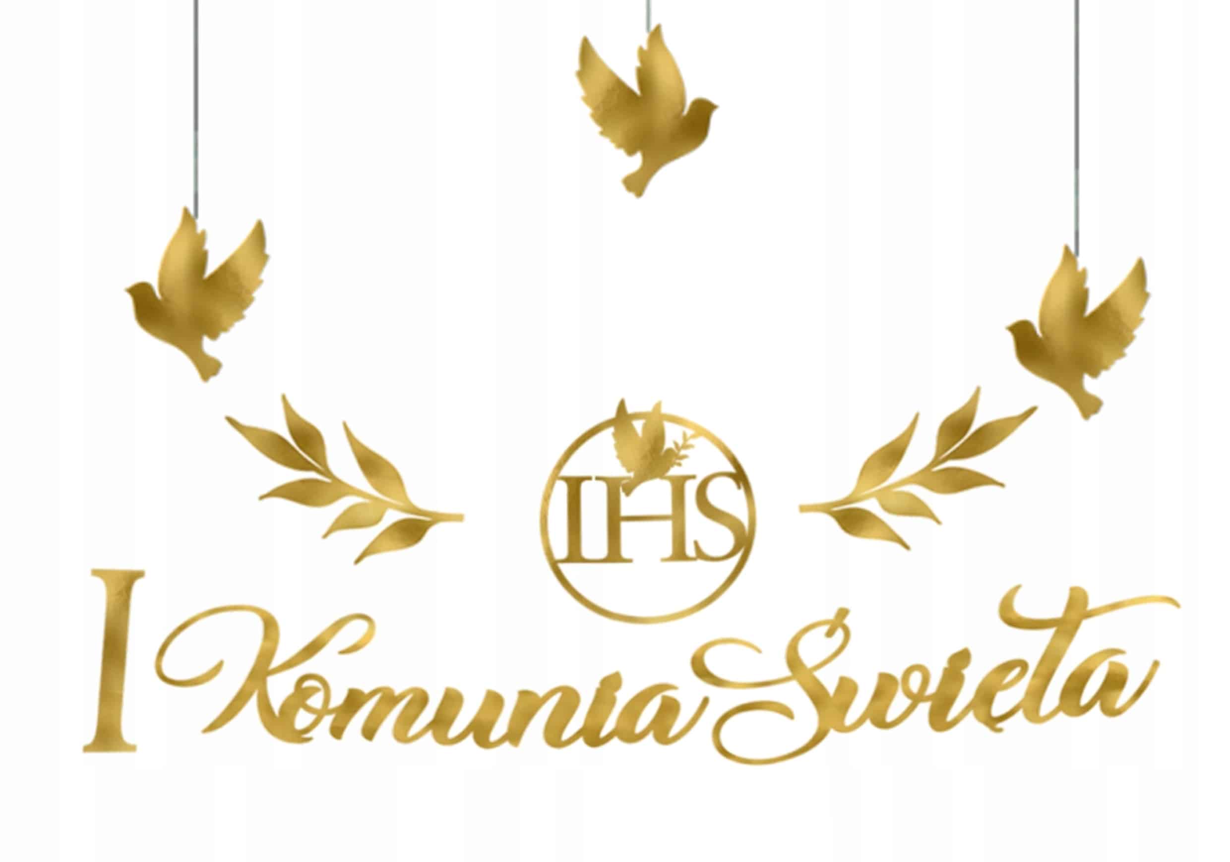 Dodatkowym atutem są 3 dekoracyjne gołąbki do powieszenia, które symbolicznie nawiązują do duchowego wymiaru Komunii Świętej. W połączeniu z eleganckim napisem tworzą spójną, stylową kompozycję.
