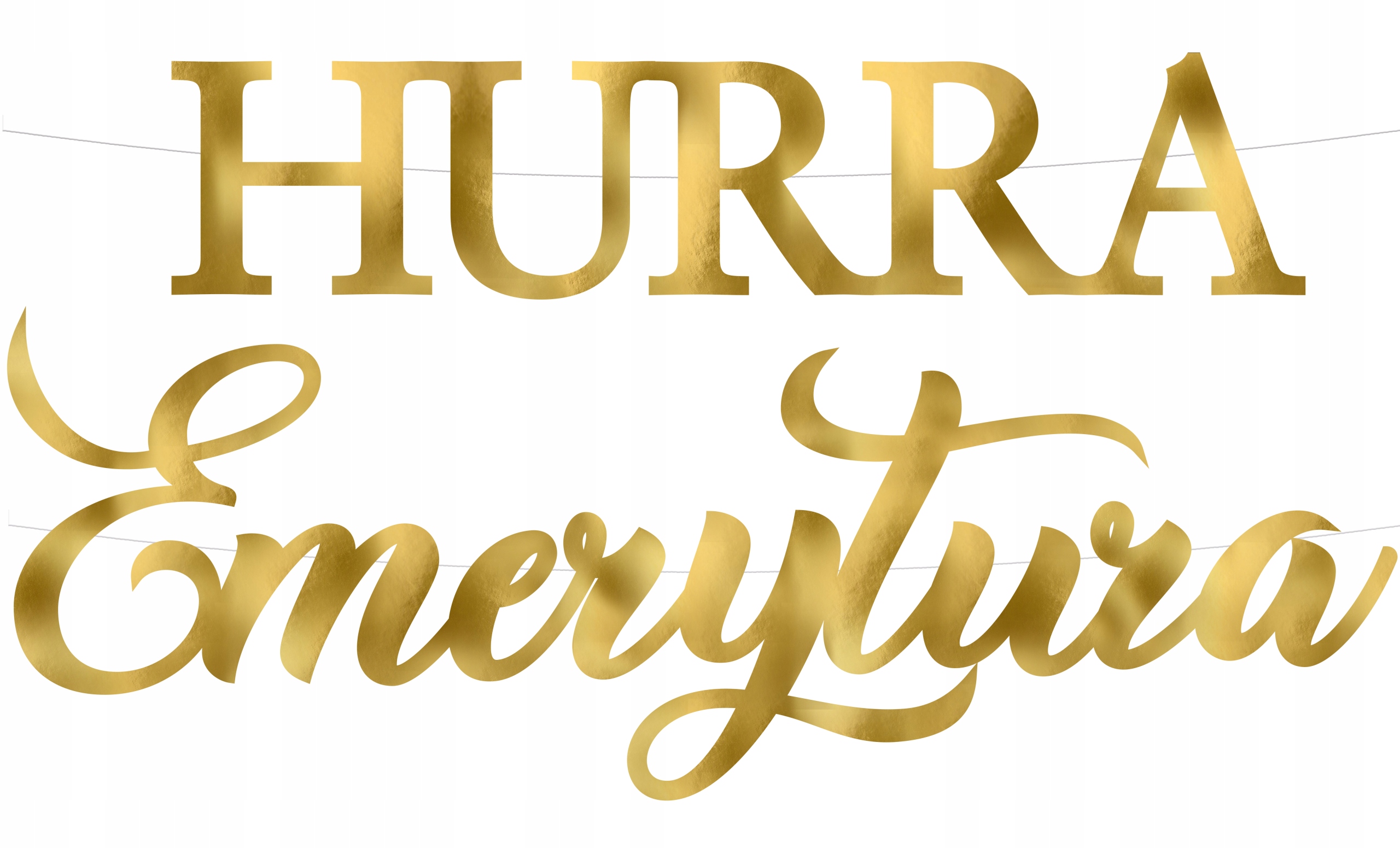 BANER z okazji przejścia na EMERYTURĘ ZŁOTY NAPIS HURRA EMERYTURA