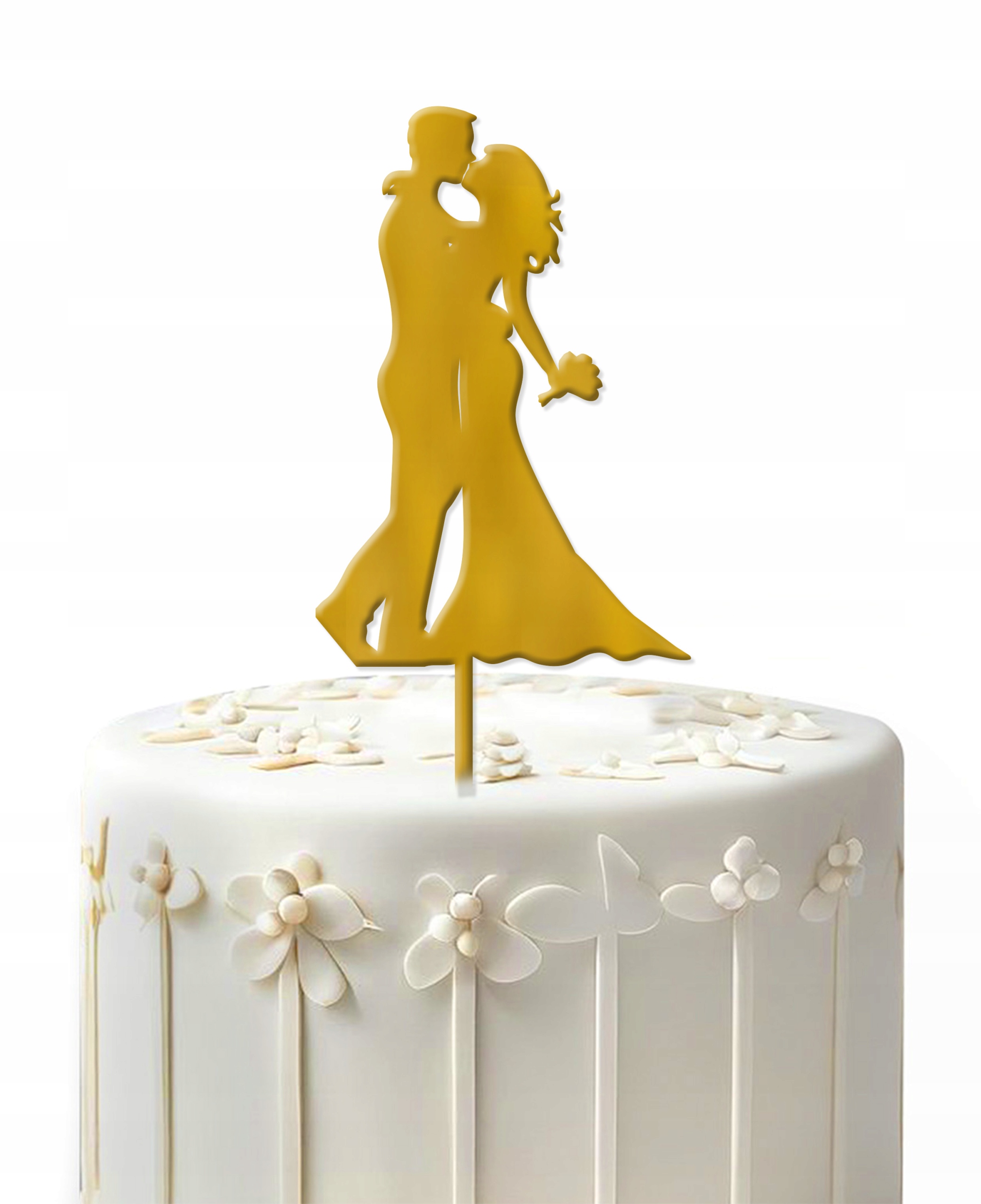 DEKORACJE NA ŚLUB TOPPER MŁODA PARA ZŁOTY pleksa ZŁOTA LUSTRZANA PLEXI