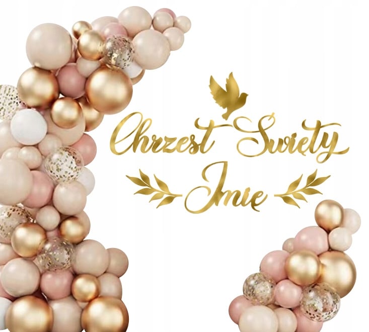 Girlanda balonowa Balony CHRZEST łuk dziki róż BANER ZŁOTY imię