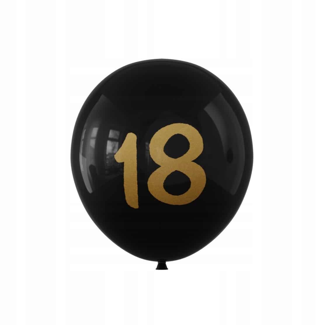 - 6 x balony lateksowe ze złotym nadrukiem 18 (30 cm) – specjalne balony z okazji 18. urodzin.