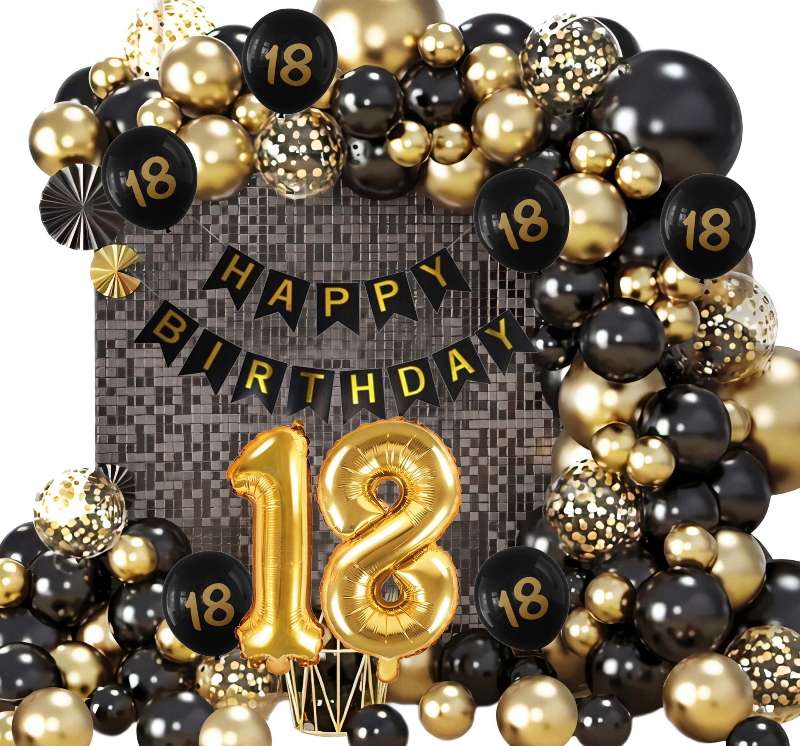 GIRLANDA BALONOWA BALONY ZESTAW DEKORACJI NA 18 URODZINY CZARNY ZŁOTY