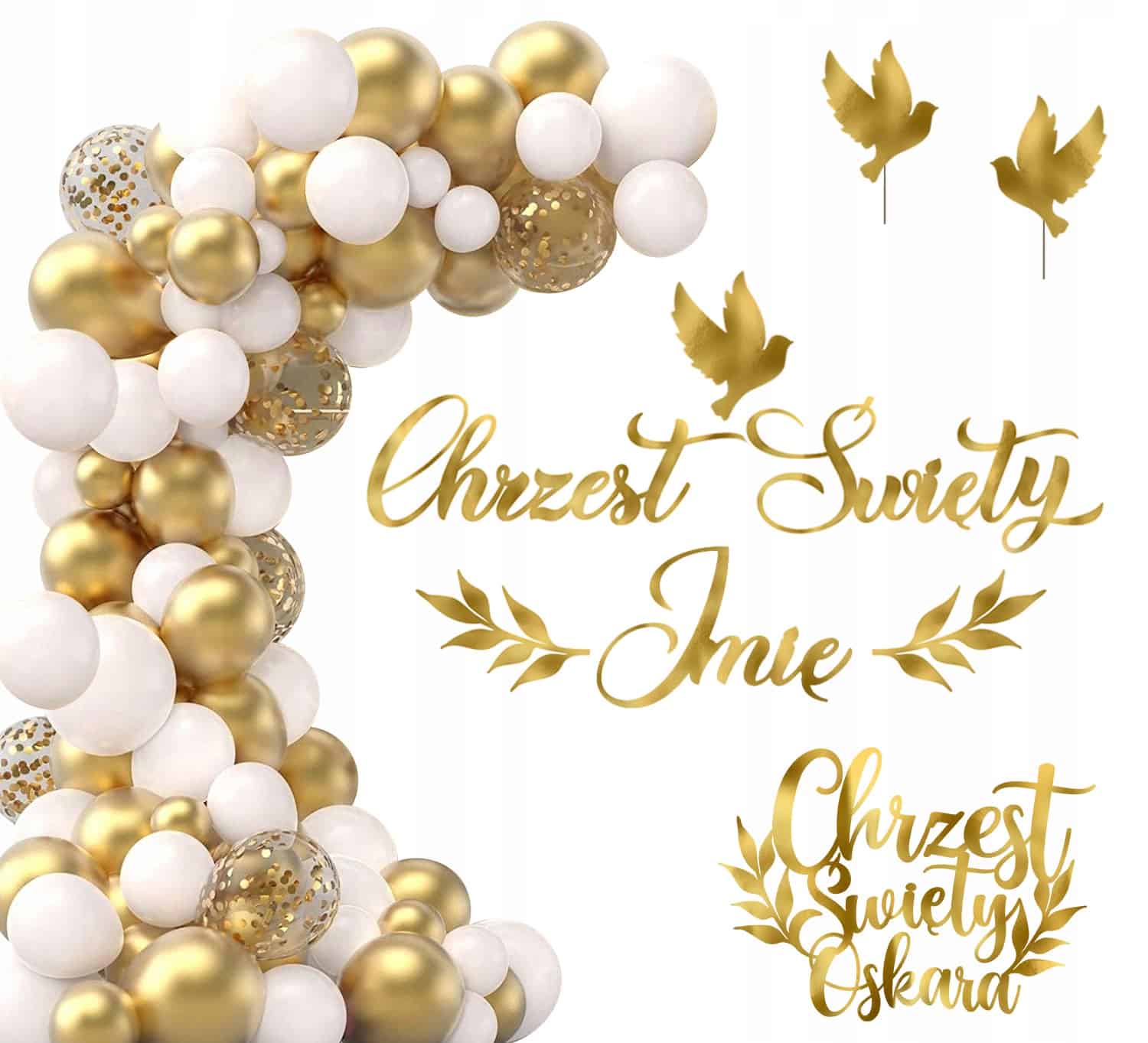 Girlanda balonowa balony białe złote zestaw na CHRZEST ŚWIĘTY baner + imię TOPPER złoty