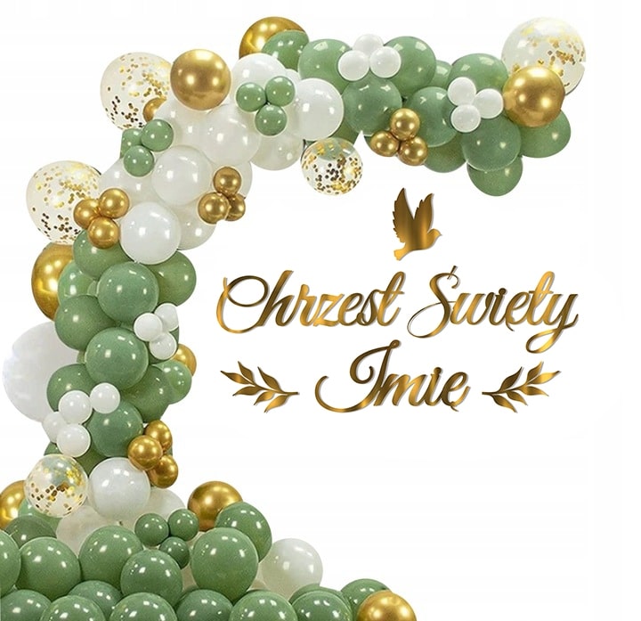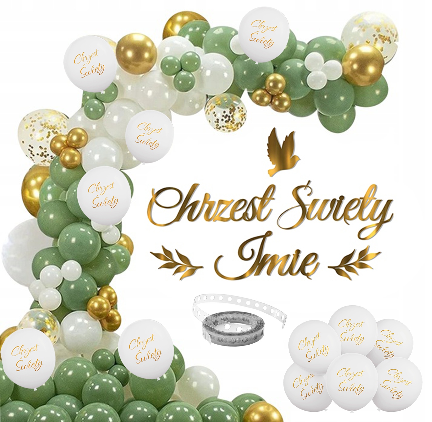 Girlanda balonowa balony złote zestaw DEKORACJI na CHRZEST ŚW. baner + imię
