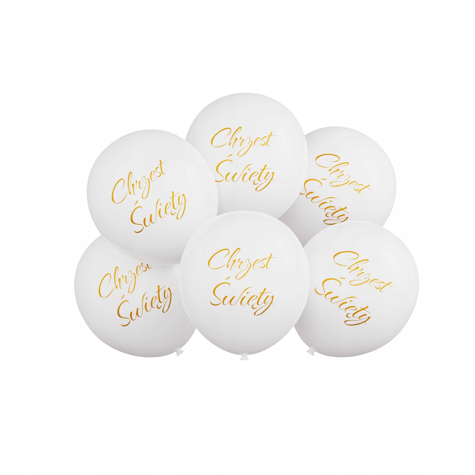 - ⭐6 x Lateksowe balony z złotym nadrukiem Chrzest Święty – Dodadzą blasku uroczystości.