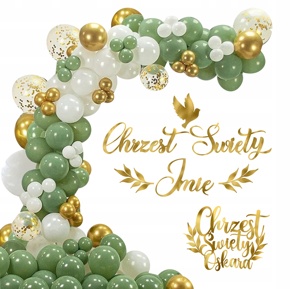 Girlanda Oliwkowa Balony Zestaw na CHRZEST ŚWIĘTY baner + imię ZŁOTE TOPPER