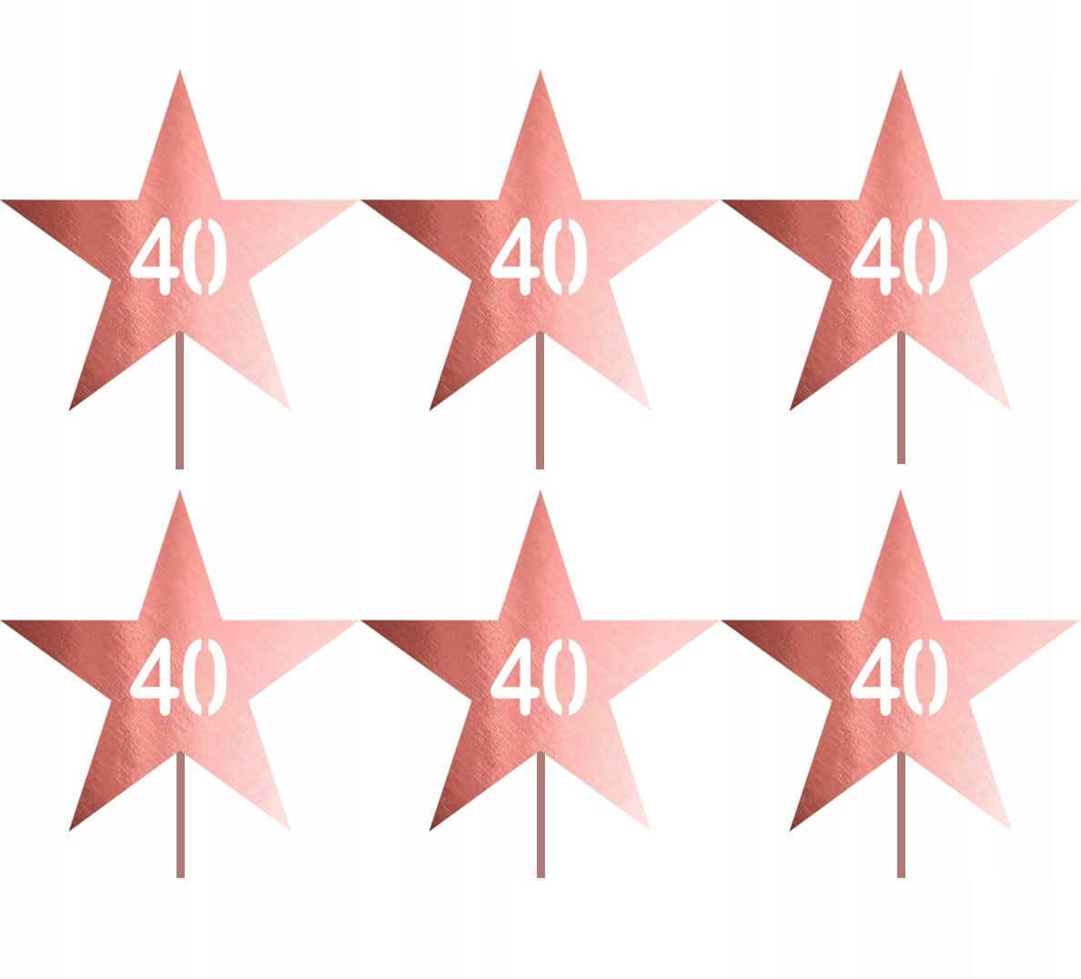 PIKERY dekoracja ROSE GOLD na urodziny 40 LAT ZŁOTY 6SZT