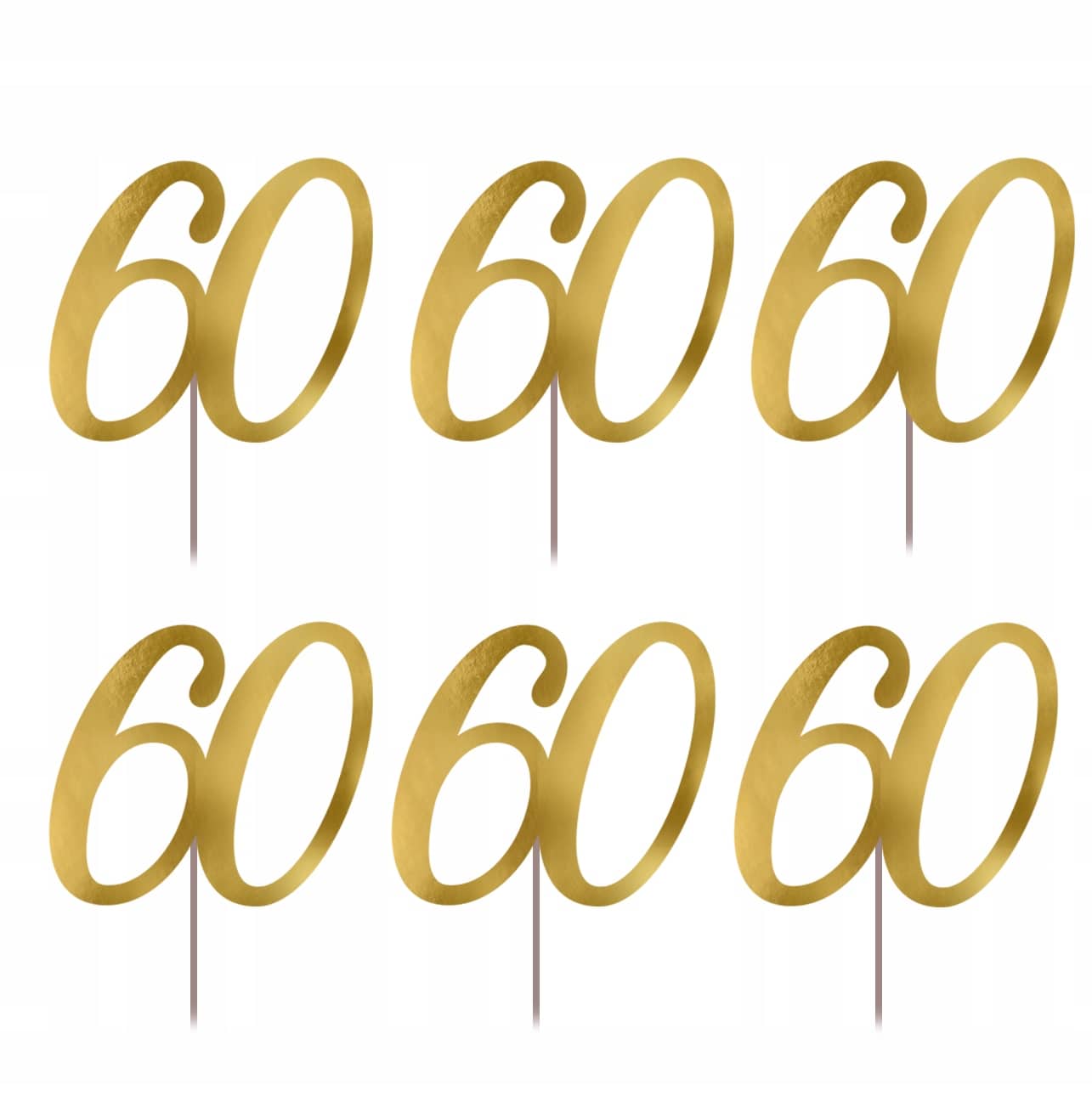 PIKERY na tort i mufinki dekoracja na urodziny 60 LAT ZŁOTY metaliczny 6SZT