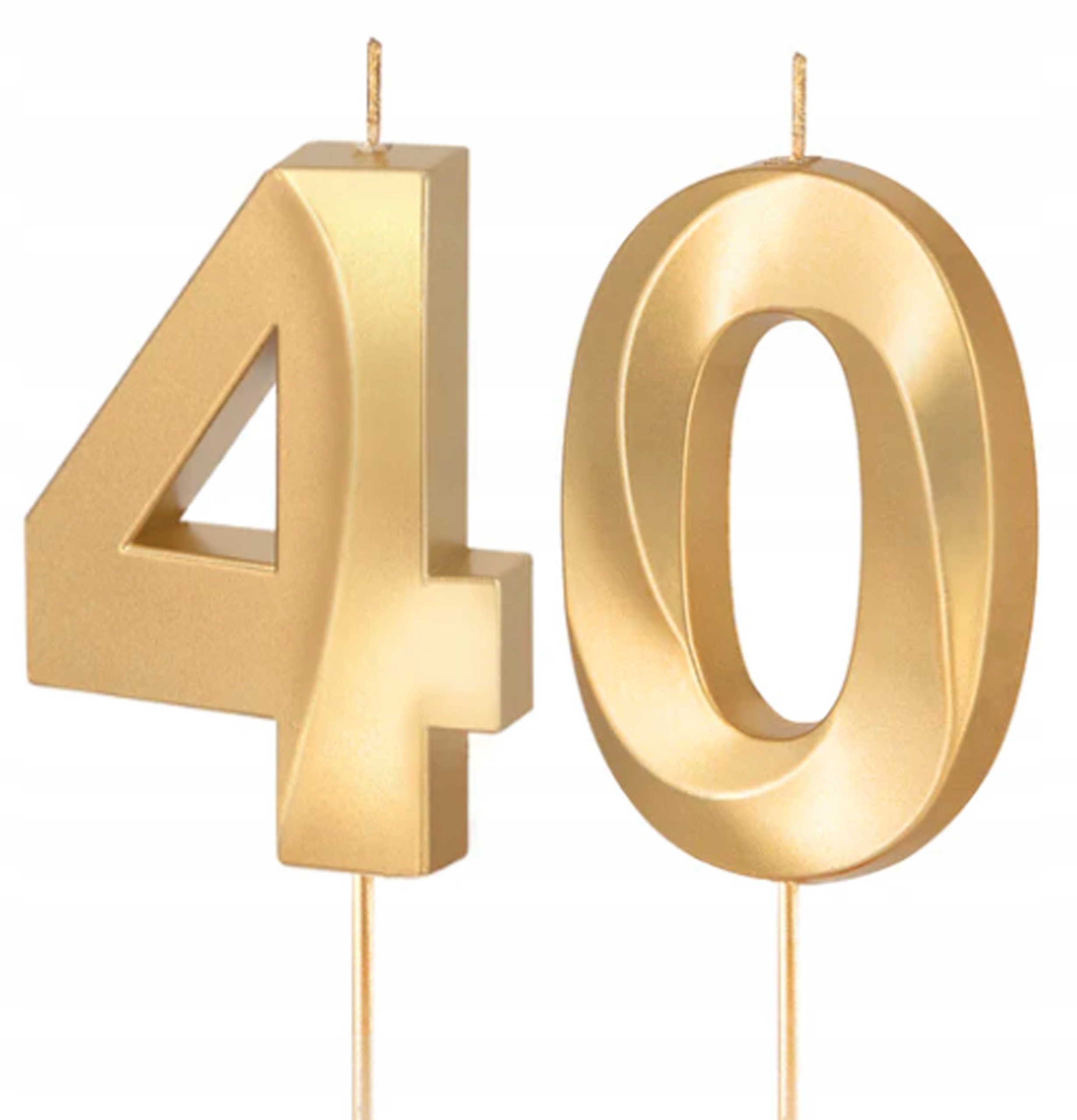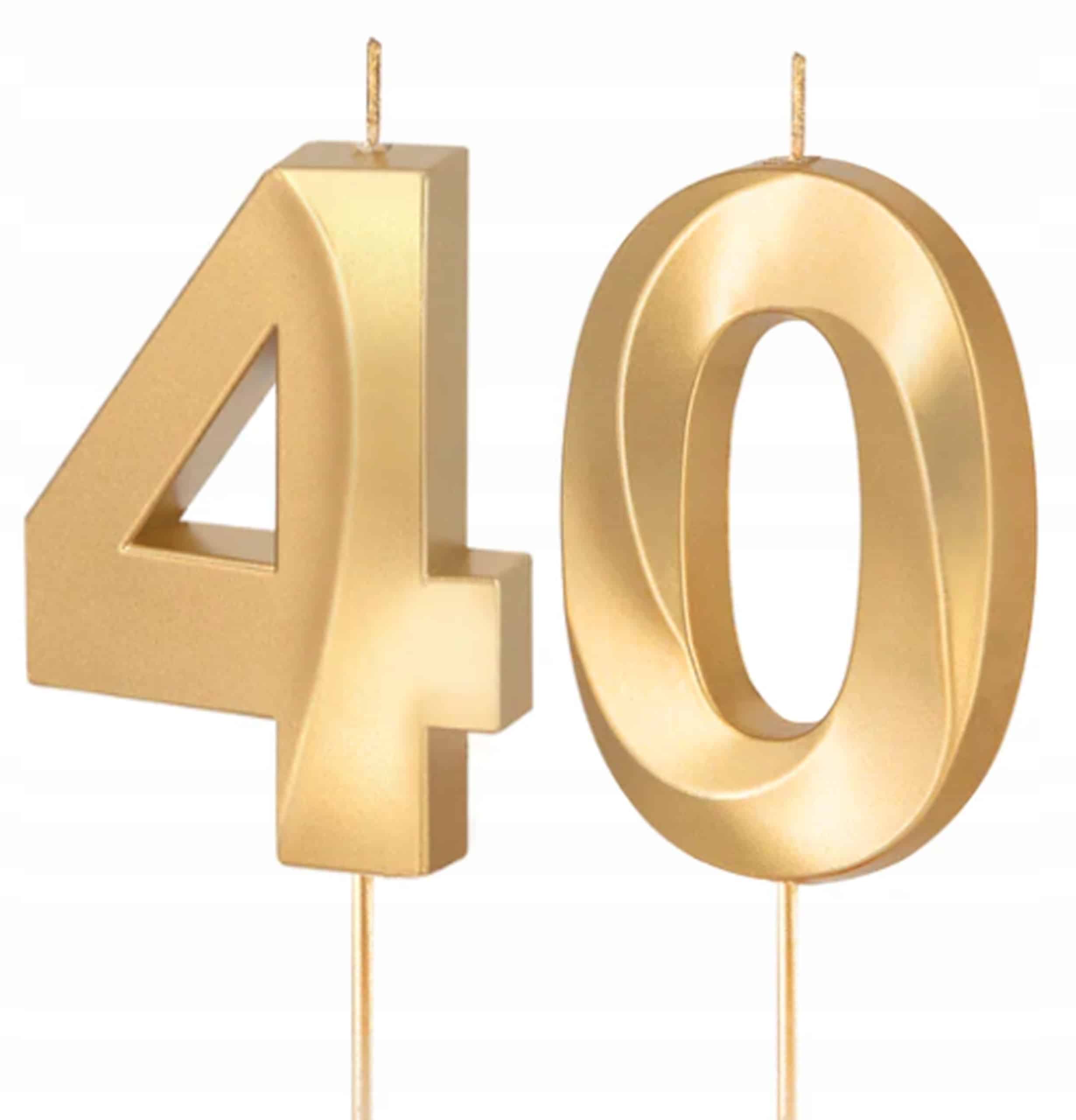 PP Świeczki urodzinowe złote metaliczne cyfra 40 na tort