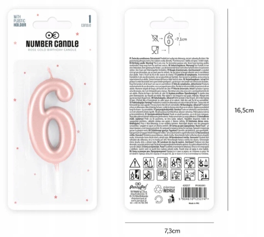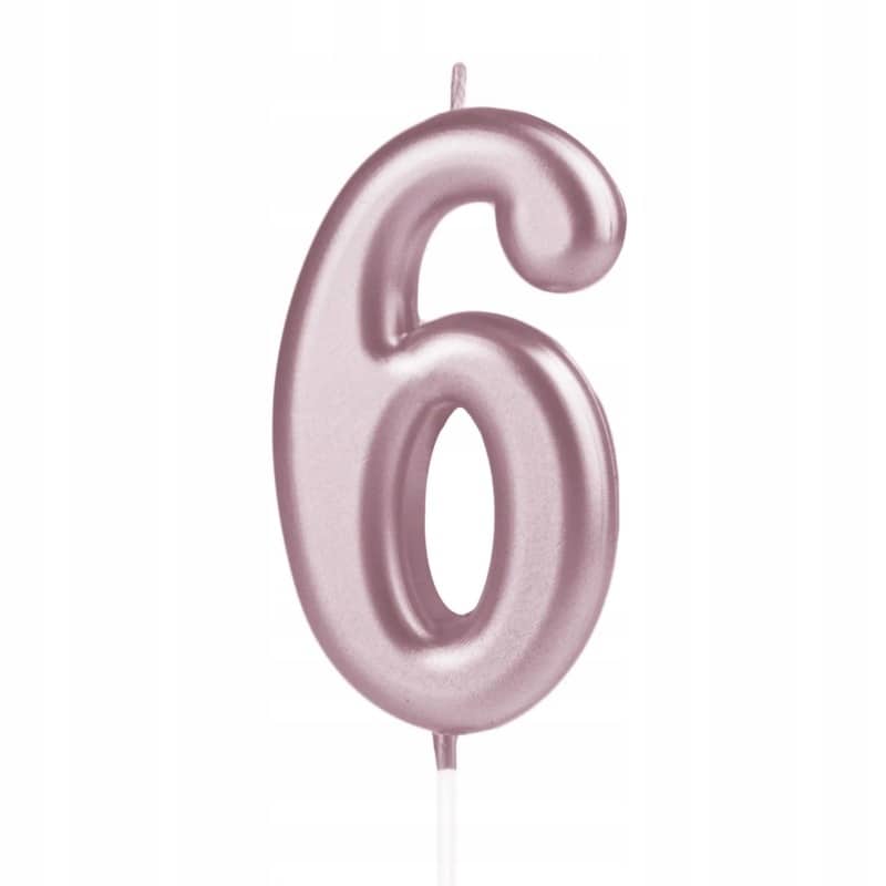 Świeczka urodzinowa cyfra 6 rose gold różowe złoto dekoracje urodzinowe PP