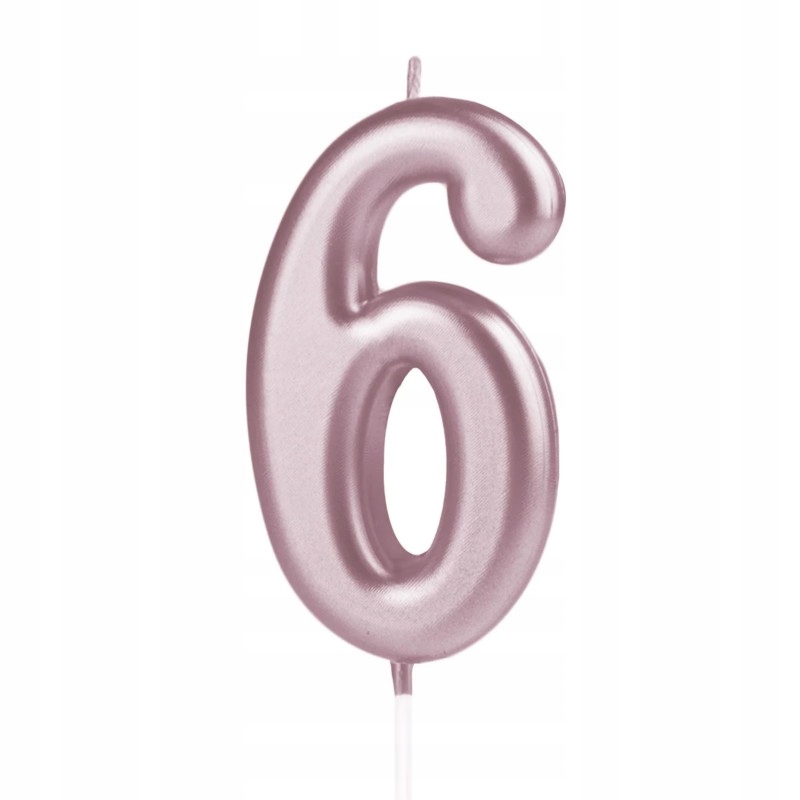 Świeczka urodzinowa na tort cyferka 6 ROSE GOLD