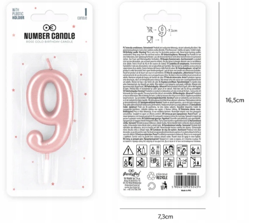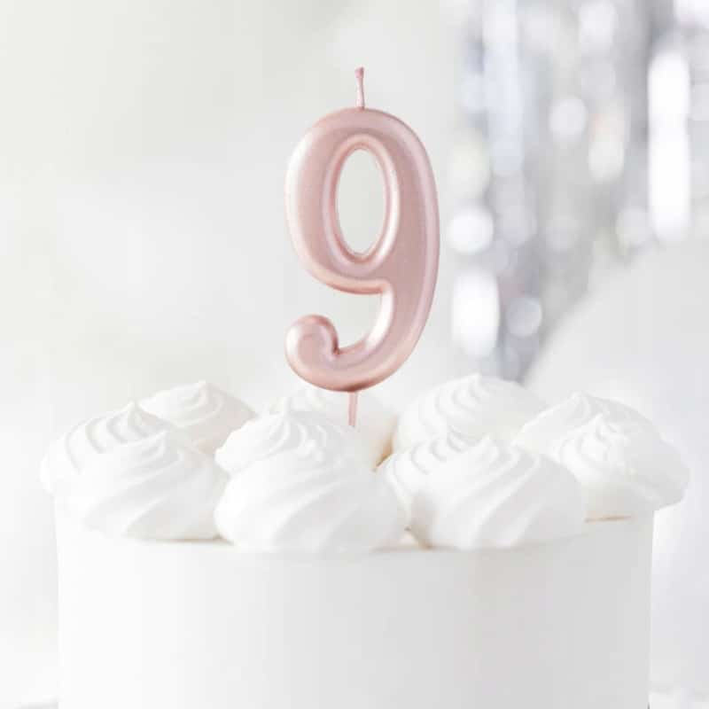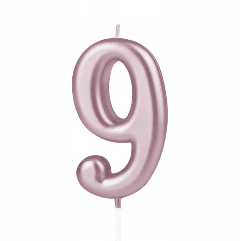 Świeczka urodzinowa na tort cyferka 9 ROSE GOLD