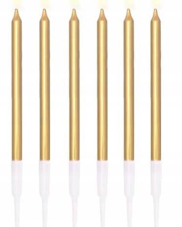 Świeczki urodzinowe gładkie złote dekoracje na tort 6 szt 13cm