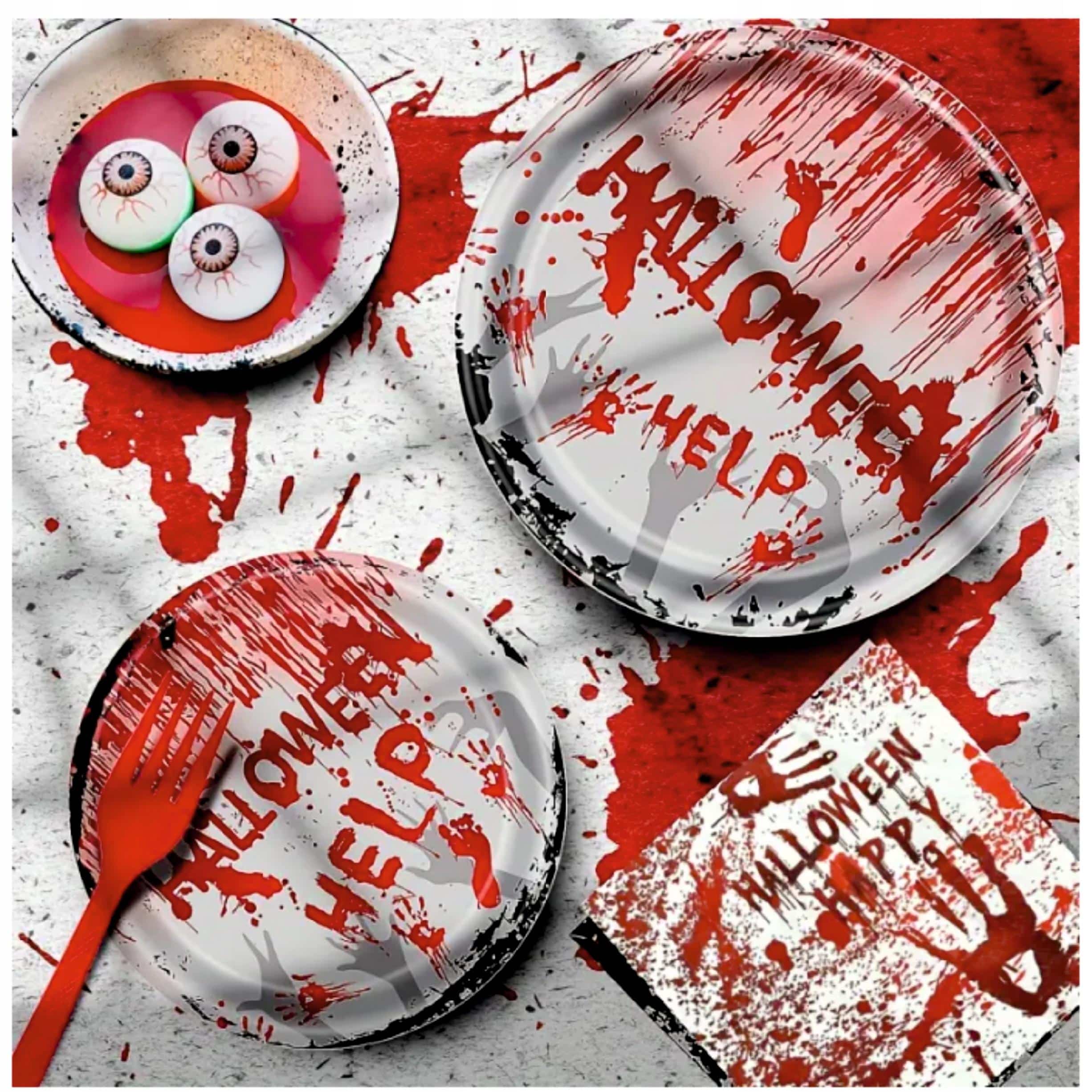 Talerzyki papierowe HALLOWEEN straszne DEKORACJE Zestaw na 6 osób IMPREZA