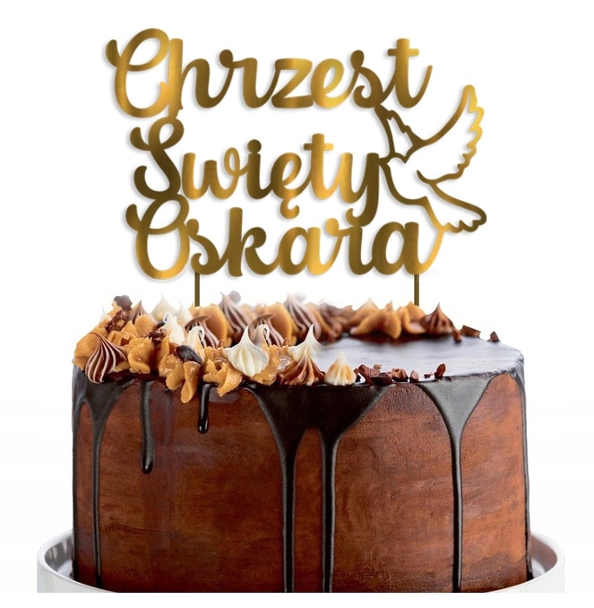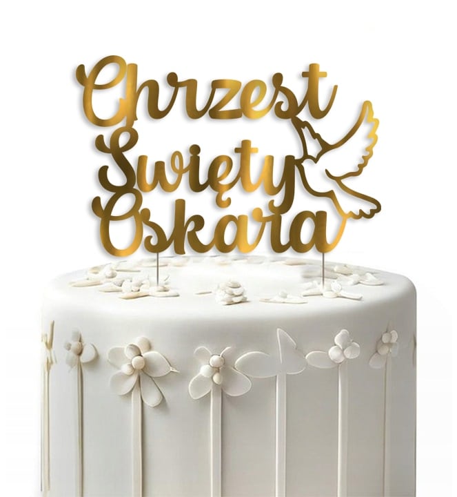 TOPPER dekoracja na tort CHRZEST ŚWIĘTY dekoracje na chrzciny IMIĘ ZŁOTY