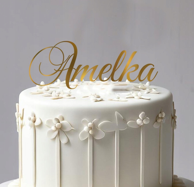 Topper dekoracja na tort dowolne Imię PLEXI ZŁOTE LUSTRO dekoracje na tortNa stanie: 9775 w magazynie