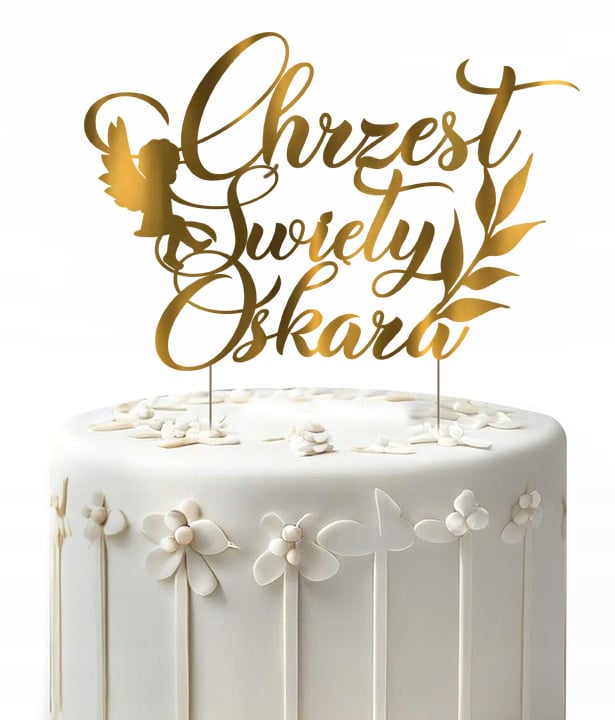 TOPPER dekoracje na tort CHRZEST Św. Aniołek chrzest święty + IMIĘ ZŁOTY