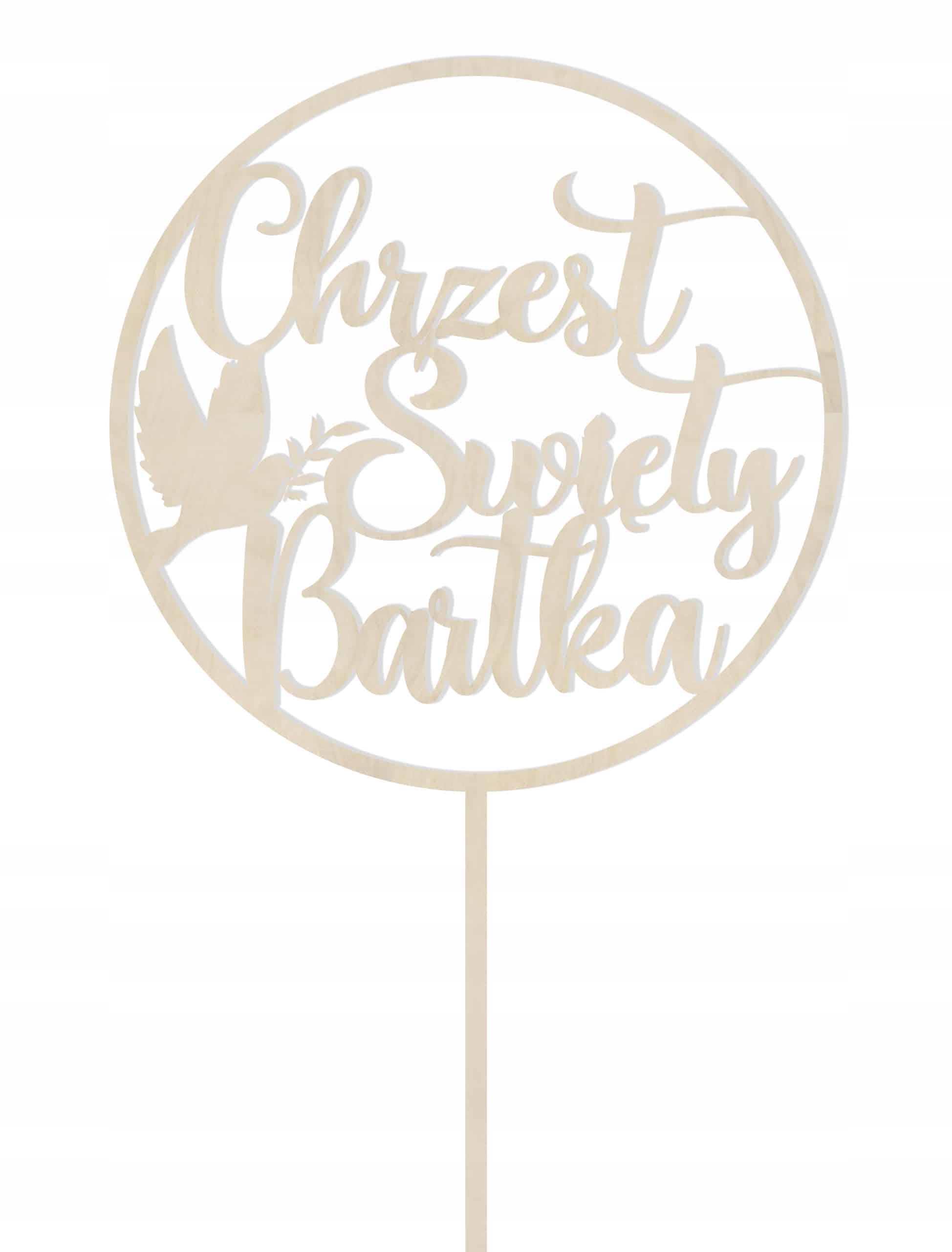TOPPER EKO DREWNIANY dekoracje dekoracja na tort CHRZEST ŚWIĘTY + IMIĘ