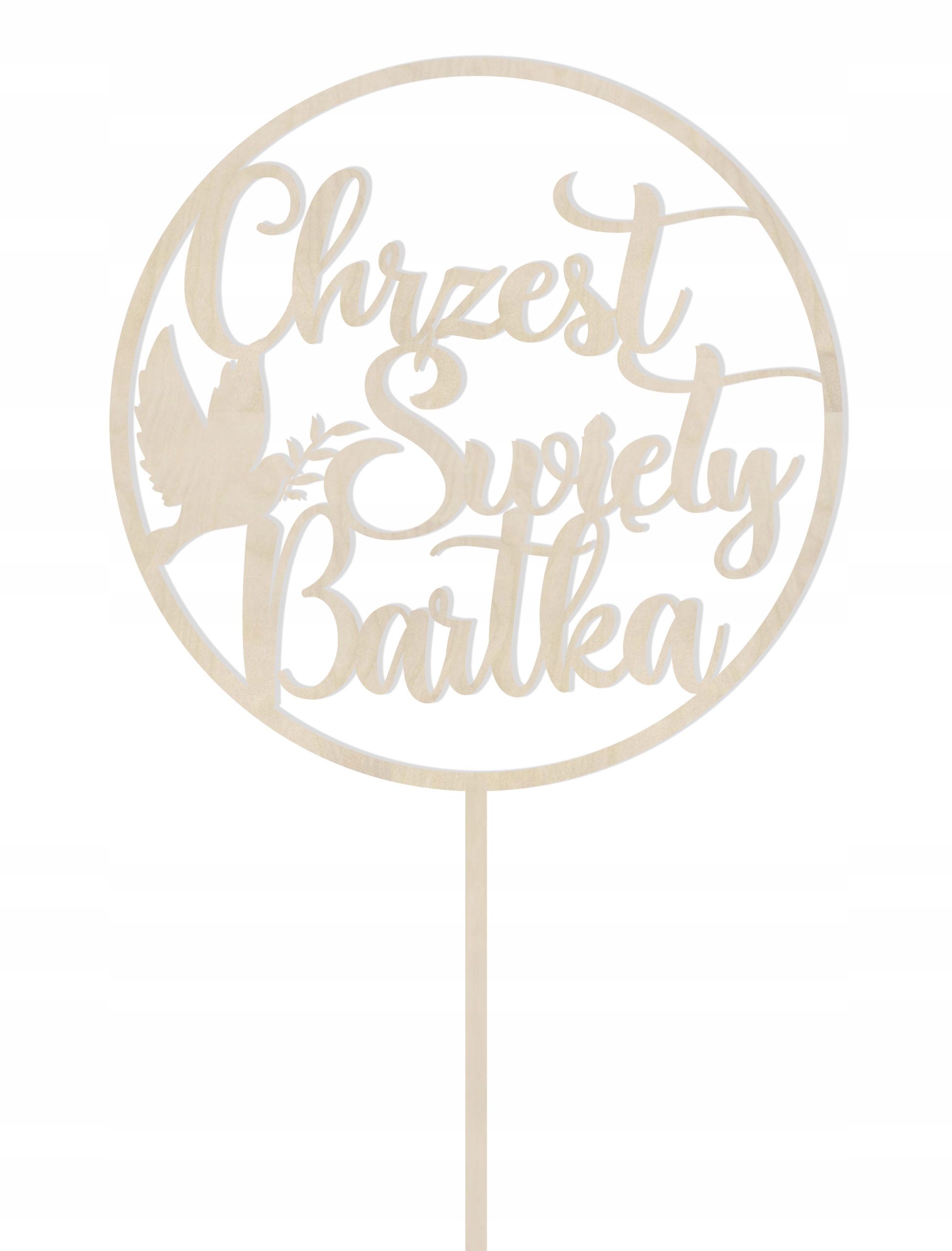Po zakupie proszę o podanie imienia dziecka w uwagach dla sprzedającego, np. „Chrzest Święty Bartka”. Topper można malować farbami, bejcować lub lakierować, dostosowując go do własnych preferencji.
