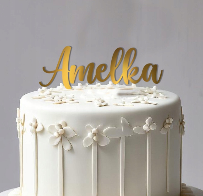Topper na tort dowolne Imię ZŁOTE LUSTRO plexi dekoracje na tort pleksaNa stanie: 9727 w magazynie