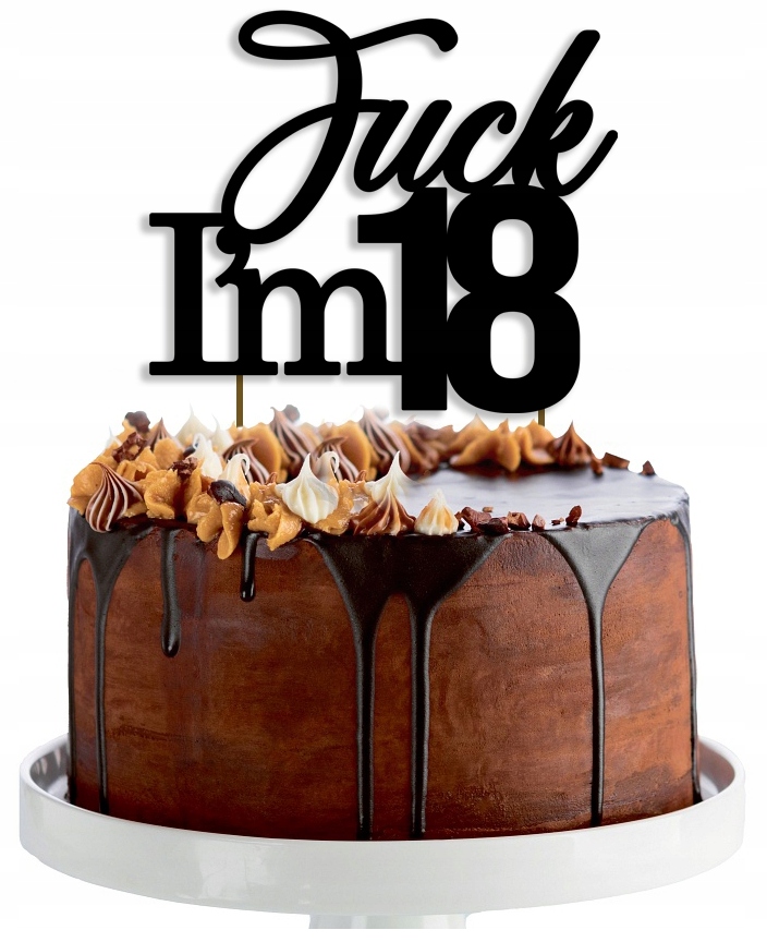 TOPPER piker dekoracje na tort urodziny fuck im 18 CZARNY napis na tort