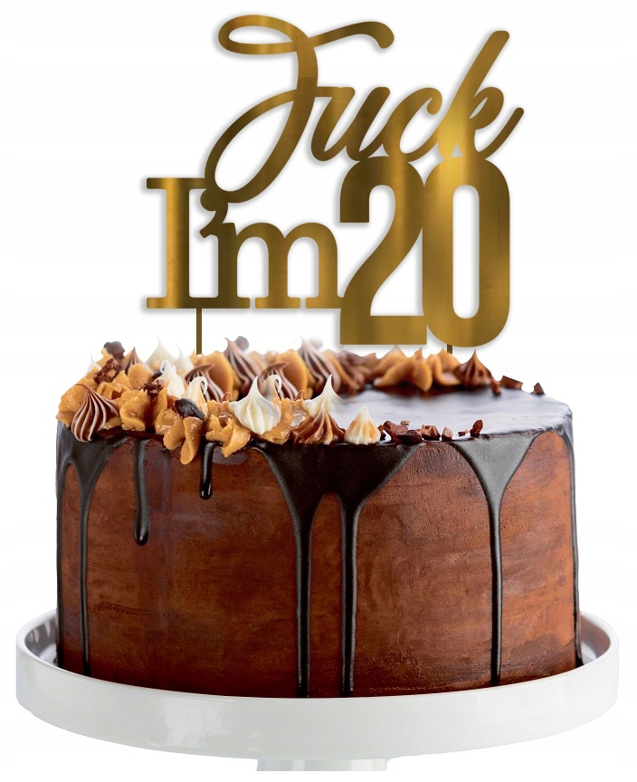 TOPPER piker dekoracje na tort urodziny fuck im 20 ZŁOTY napis na tort
