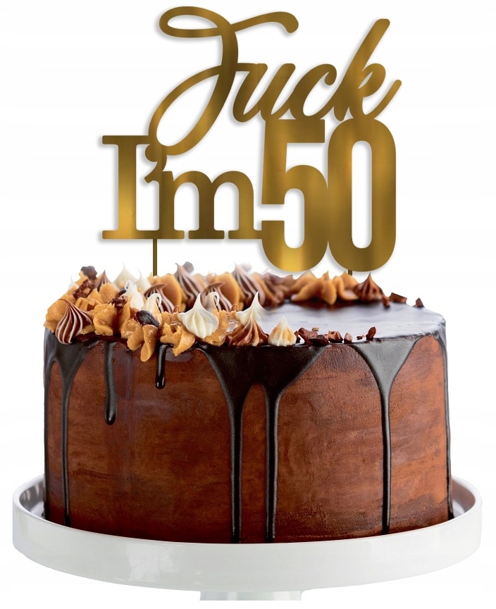 TOPPER piker dekoracje na tort urodziny fuck im 50 ZŁOTY napis na tort