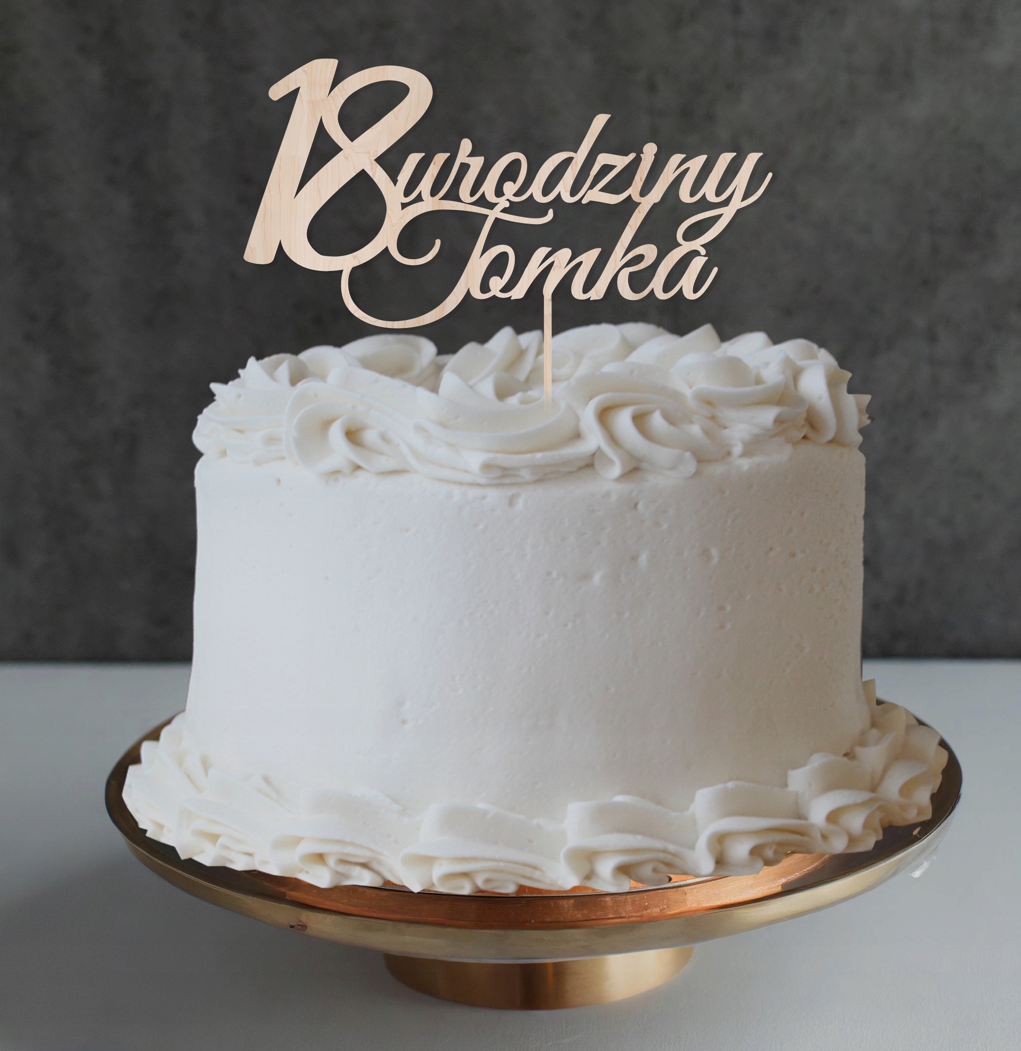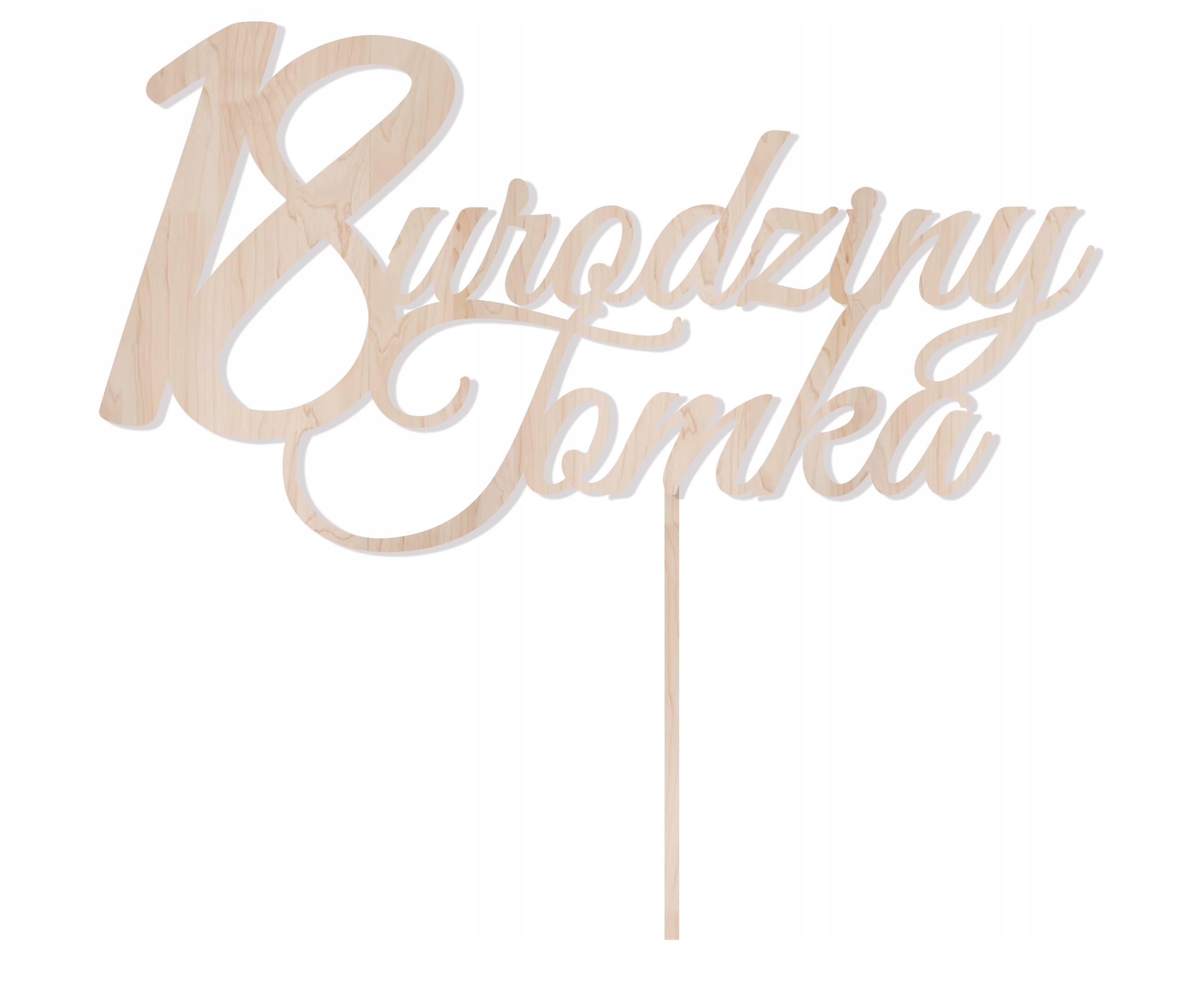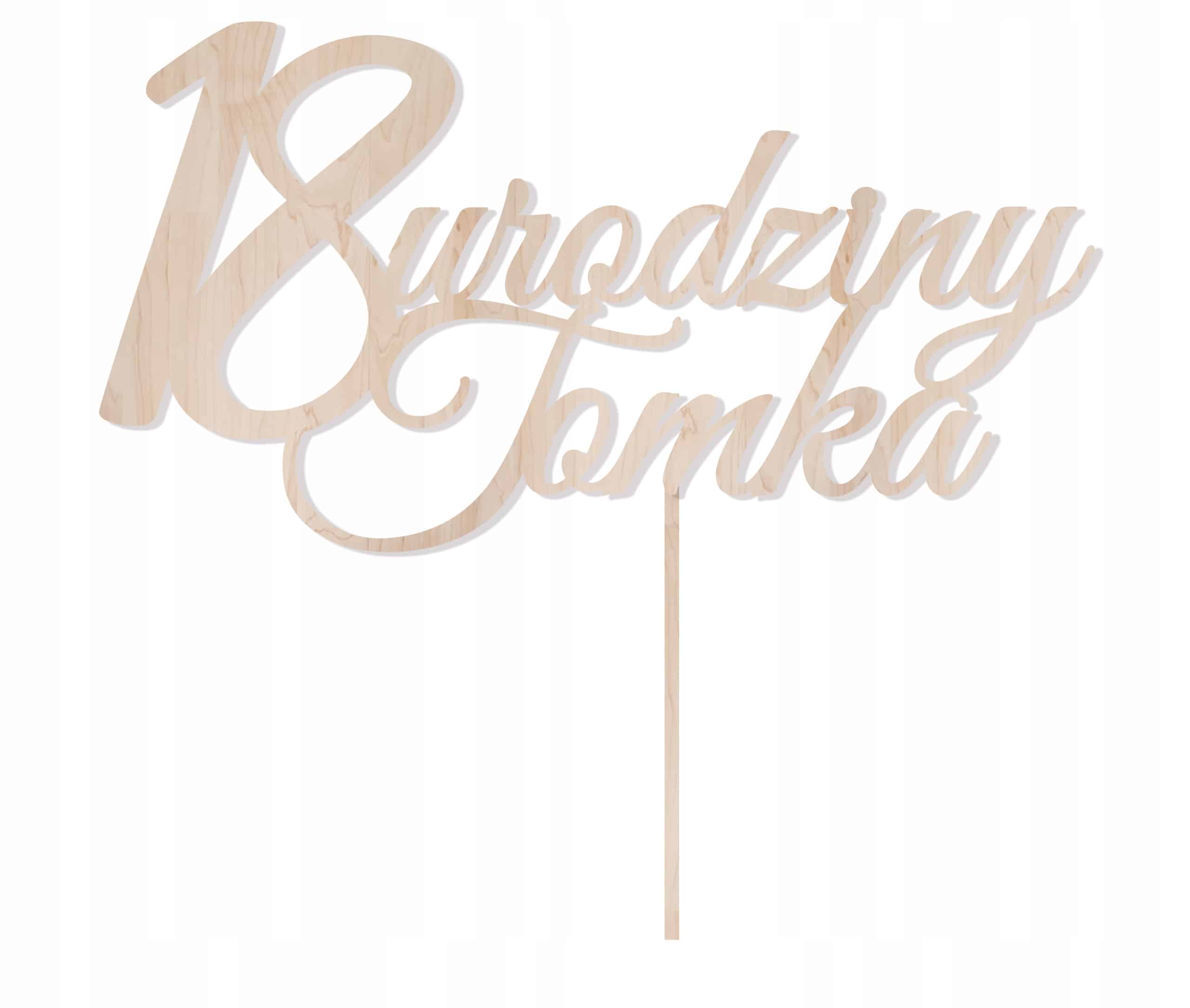TOPPER toper EKO drewniany na tort 18 30 40 dowolna cyfra urodziny + imię