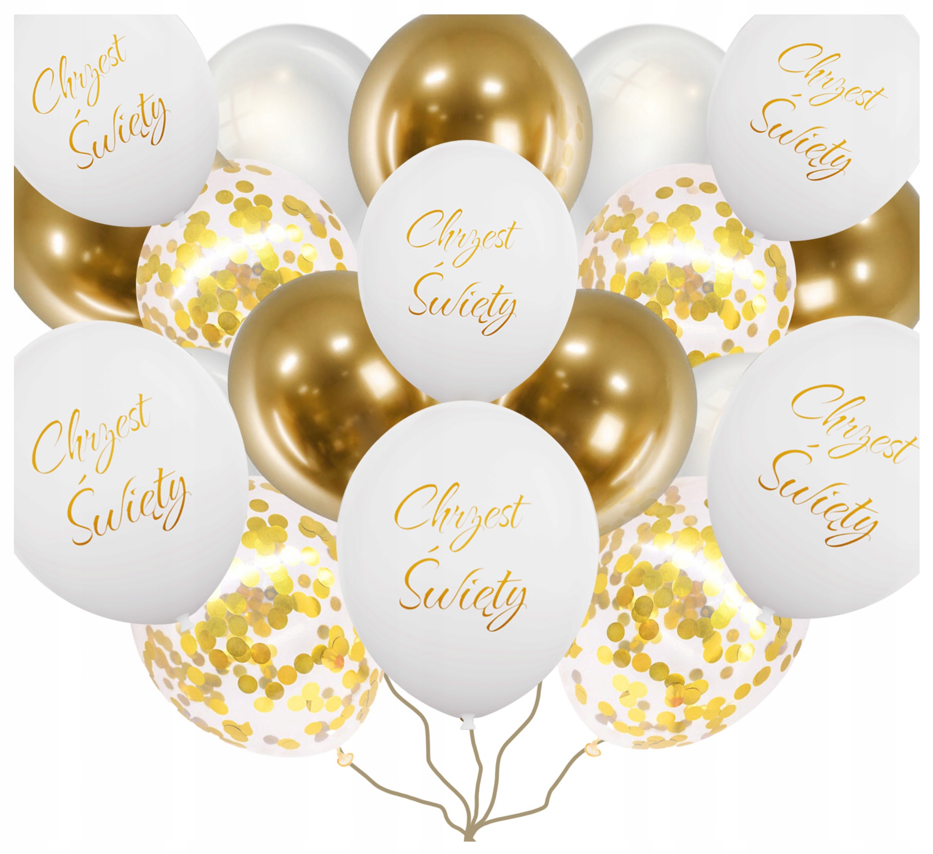 Zestaw Balonów dekoracje na chrzest święty złoty chrom biały konfetti 24szt