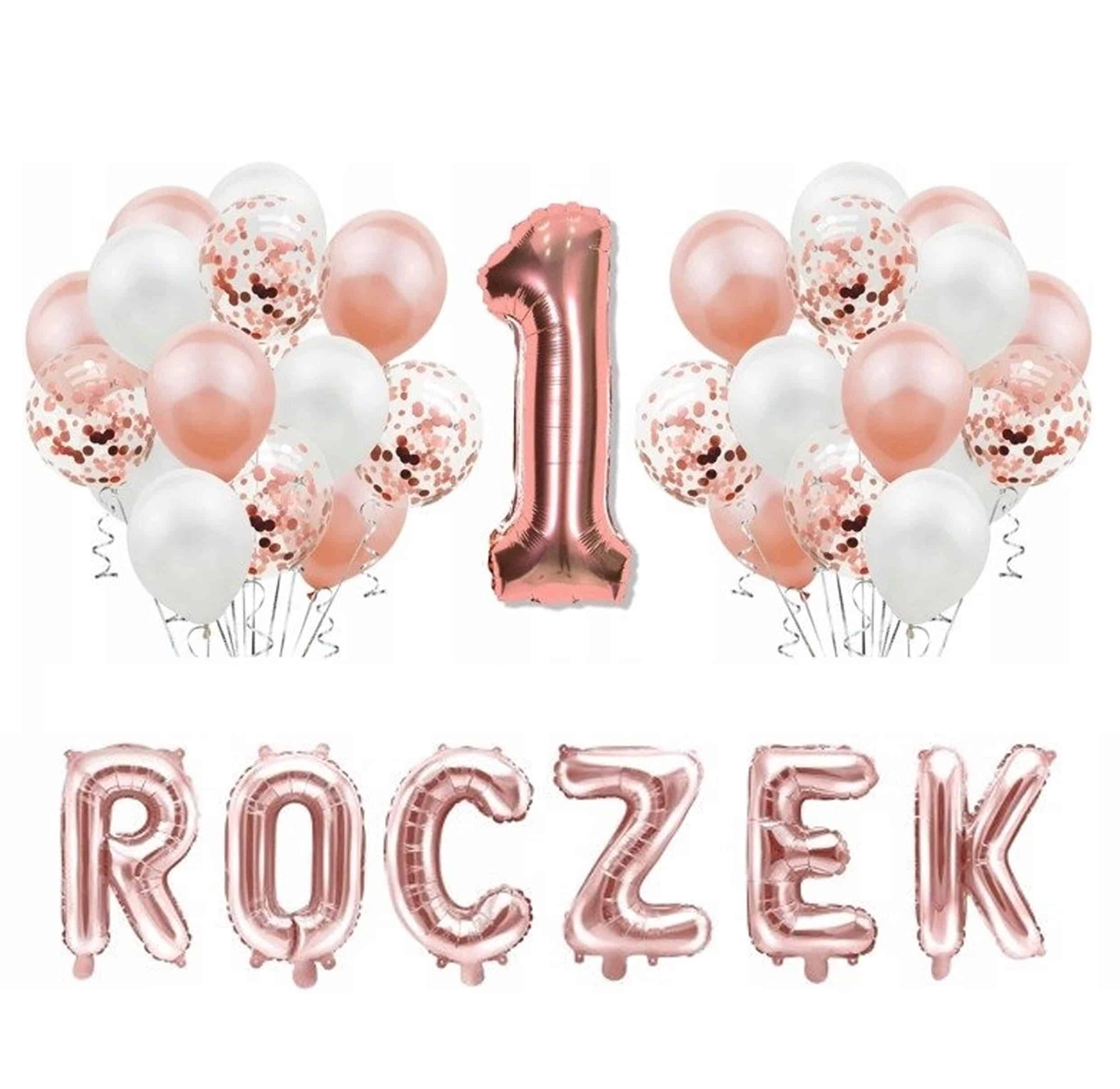 Zestaw balonów dekoracje na roczek 1 dekoracje urodzinowe ROSE GOLD XL